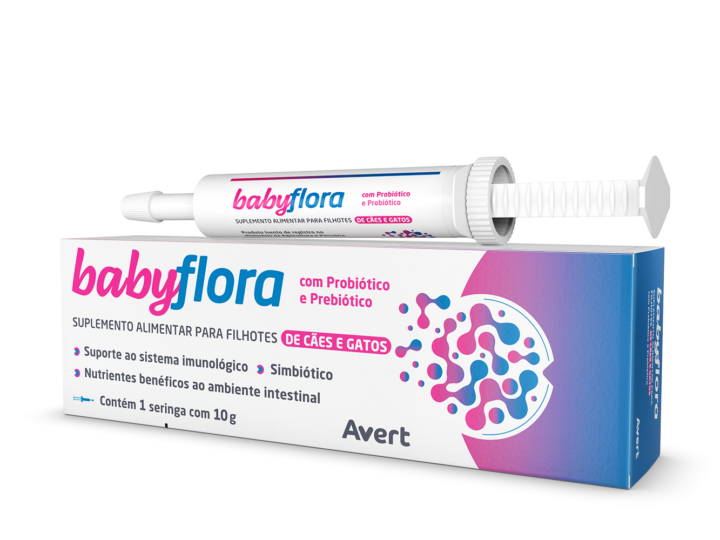 BABYFLORA is a food supplement made up of a combination of probiotics, prebiotics (inulin, FOS) and egg, suitable for puppies and kittens. It helps balance the intestinal microbiota and supports the immune system.