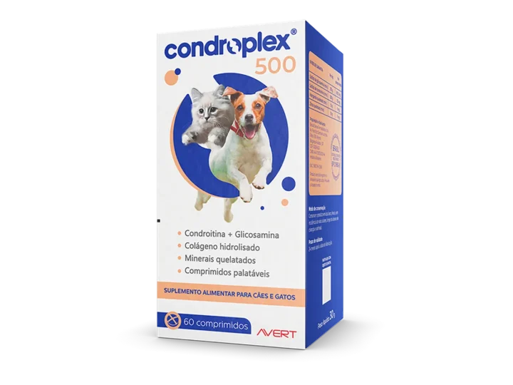 Chondroplex® 500 tablets is a food supplement made up of essential nutrients for the joints. Suitable for cats and small dogs of any age.