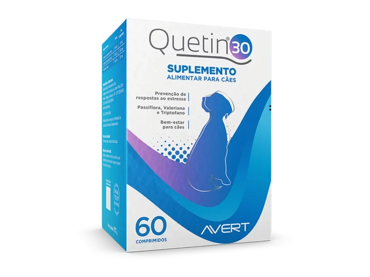 QUETIN® 30 is a supplement indicated to prevent behavioral responses to stress resulting from disturbing stimuli, such as aversive sounds produced by fireworks, screams, cars and storms, helping with the animal's well-being. Suitable for dogs at any stage of life.