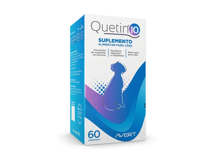 QUETIN® 10 is a supplement indicated to prevent behavioral responses to stress resulting from disturbing stimuli, such as aversive sounds produced by fireworks, screams, cars and storms, helping with the animal's well-being. Suitable for dogs at any stage of life.