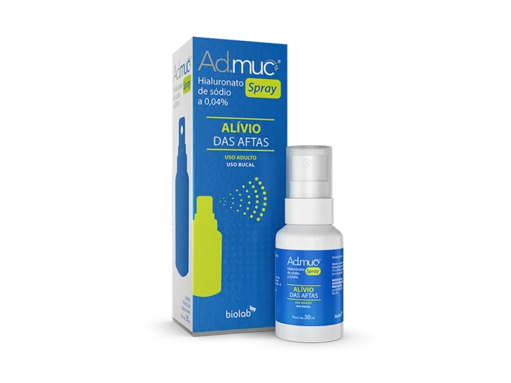AdMuc® Spray é indicado para umidificar a mucosa oral (alivio da sensação de boca seca), para inflamações na gengiva, aftas e sangramentos.