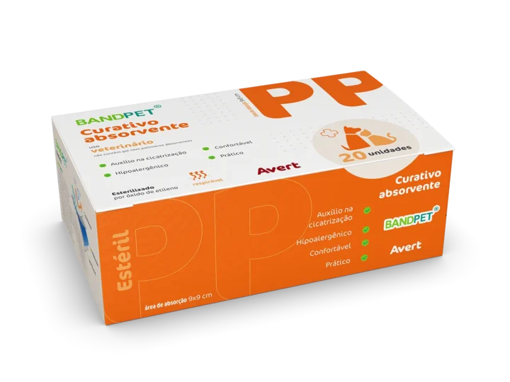 BANDPET® ESTÉRIL PP é um curativo absorvente de uso veterinário formado por três camadas que auxiliam no processo de cicatrização, além de proporcionar proteção mecânica e formar uma barreira que impede a contaminação da região lesionada. O produto não contém gel nem polímeros absorventes e é esterilizado por óxido de etileno. Indicado para auxiliar no manejo de feridas em cães e gatos de qualquer idade.
