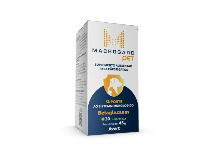 Macrogard Pet é um suplemento alimentar composto por beta 1,3/1,6-glucanas purificadas derivadas de extrato de levedura. Indicado para o suporte ao sistema imunológico de cães e gatos em qualquer idade que se beneficiem do aporte desse nutriente.