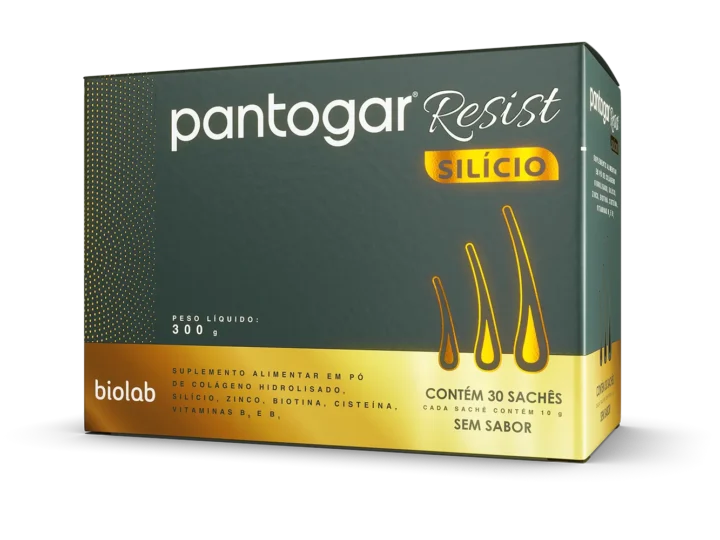 Pantogar® Resist Silício é um suplemento com fórmula inovadora que combina Silício Orgânico + Colágeno + Cisteína + Biotina + Zinco para aumento da resistência e ancoragem dos fios de cabelo. Em apresentação sachê e sem sabor, é versátil e prático de consumir. _x000D_