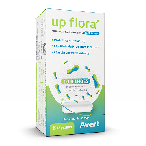 UP FLORA® é um suplemento alimentar composto por probiótico, prebiótico e zinco. Indicado para auxiliar no equilíbrio da microbiota intestinal de cães e gatos em suas diversas fases de desenvolvimento.